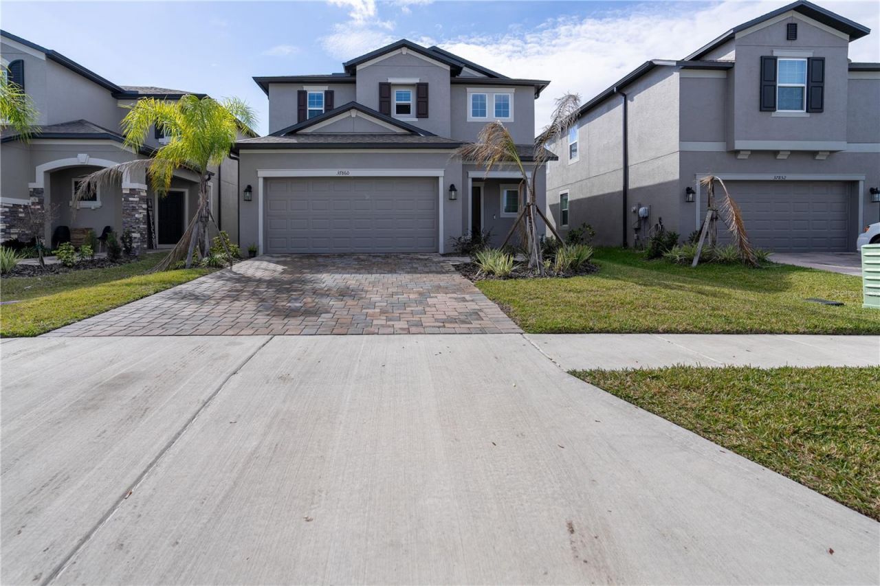 This beautifully designed two-story home offers 3 bedrooms, 2.5 bathrooms, and a 2-car garage. Upon entry, you're welcomed by an inviting foyer that sets the tone for the rest of the home. A hallway off the foyer provides convenient access to the garage, a powder room, and a full-size laundry room. Continuing through the home, you'll find a large, open-concept family room and kitchen-perfect for modern living and entertaining. The eat-in kitchen features a center island and flows seamlessly into the dining area and family room. Sliding glass doors lead to a covered patio and fully fenced backyard, ideal for outdoor gatherings and relaxation. Upstairs, a versatile open loft area offers the perfect spot for a study nook, reading space, or home office. The owner's suite is generously sized and includes a walk-in closet, dual vanities, and a large walk-in shower. Two additional bedrooms, each with closets and natural light, are located nearby. A full bathroom with dual vanities and a linen closet completes the second floor.Currently tenant-occupied on a month-to-month basis, providing immediate rental income with flexibility for future occupancy, ideal for investors or buyers planning a primary residence. Conveniently located near SR-56 and US-301 with quick access to I-75, offering an easy commute to Tampa, Wesley Chapel, shopping, dining, and everyday amenities. Community amenities include a clubhouse, pool, and playground.