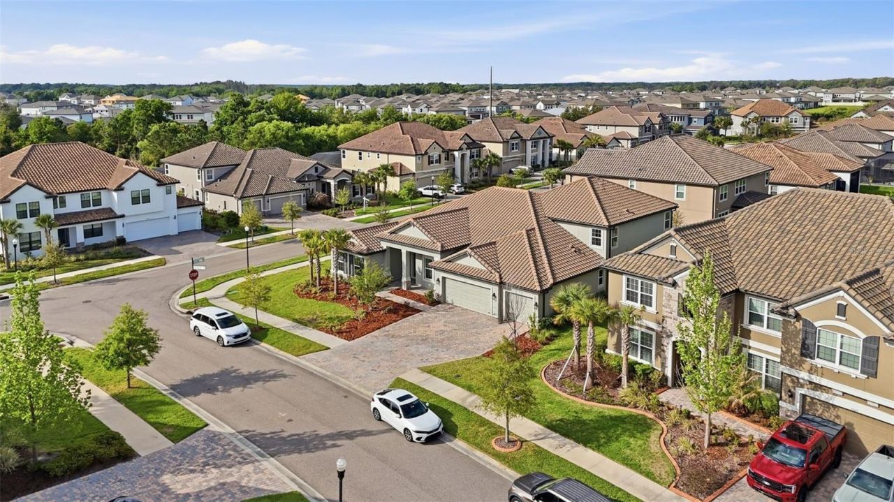 One or more photo(s) has been virtually staged. Looking for a plan that has spacious square footage of a two-story home but lives like a one-story home? Look no further, this 4,472 sq. ft. plan has an upstairs bonus room with a bathroom that adds extra space without the full extra floor.An open-concept floorplan with 5 bedrooms and 4.5 bathrooms. The formal dining and formal living room are sequestered off with gorgeous columns that both shape the room and bring in the natural light from the family room's oversized slider, filling the space with warmth. Love to entertain guests for a long weekend? Bedroom 4 is tucked just off the entryway with its open private bathroom, a perfect suite for guests to come and go as they please. The caf?, just off the kitchen, is a wonderful place to start the day. The open kitchen overlooks both the caf? and the family room and boasts a full walk-in pantry with modern cabinets, quartz countertops and stainless-steel appliances.There's a powder room for guests just off the entryway from the 3-car garage. Behind that, an oversized utility room for all of life's messes. Stairs leads to the bonus room, big enough for any number of dreams: man cave, theatre room, additional living room, play room, you name it! A 5th bedroom and bathroom await as well, perfect for a private office, multigenerational family, or an older child looking for a space of their own.The remaining secondary bedrooms on are the far backside of the home, both complete with walk-in closets. There is a hall bathroom to share between the rooms and has an exterior door to the backyard.A double entry owner's suite adds the necessary welcome to this oasis. Multiple windows open up this room with natural light. The bathroom has two double sink vanities, soaking tub, and an oversized shower, perfect after a long day or morning run!Watergrass Community is a highly-rated, family-friendly master-planned community with resort-style amenities. This growing area has the sought-after Kirkland Ranch Academy of Innovation and Innovation Preparatory Academy schools while close to the shopping and dining of the Tampa Premium Outlets and The Shops at Wiregrass. Approximately 35 minutes north of Downtown Tampa, 45 minutes from Tampa International Airport and just above an hour from Disney World, Orlando.